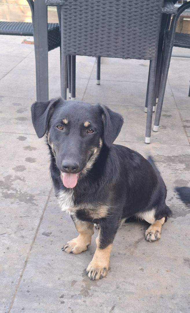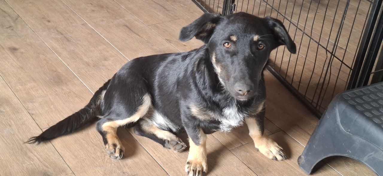Krecik to czarny, 9-miesięczny piesek o uroczych krótkich łapkach. Jest nieśmiały, ale bardzo kocha ludzi