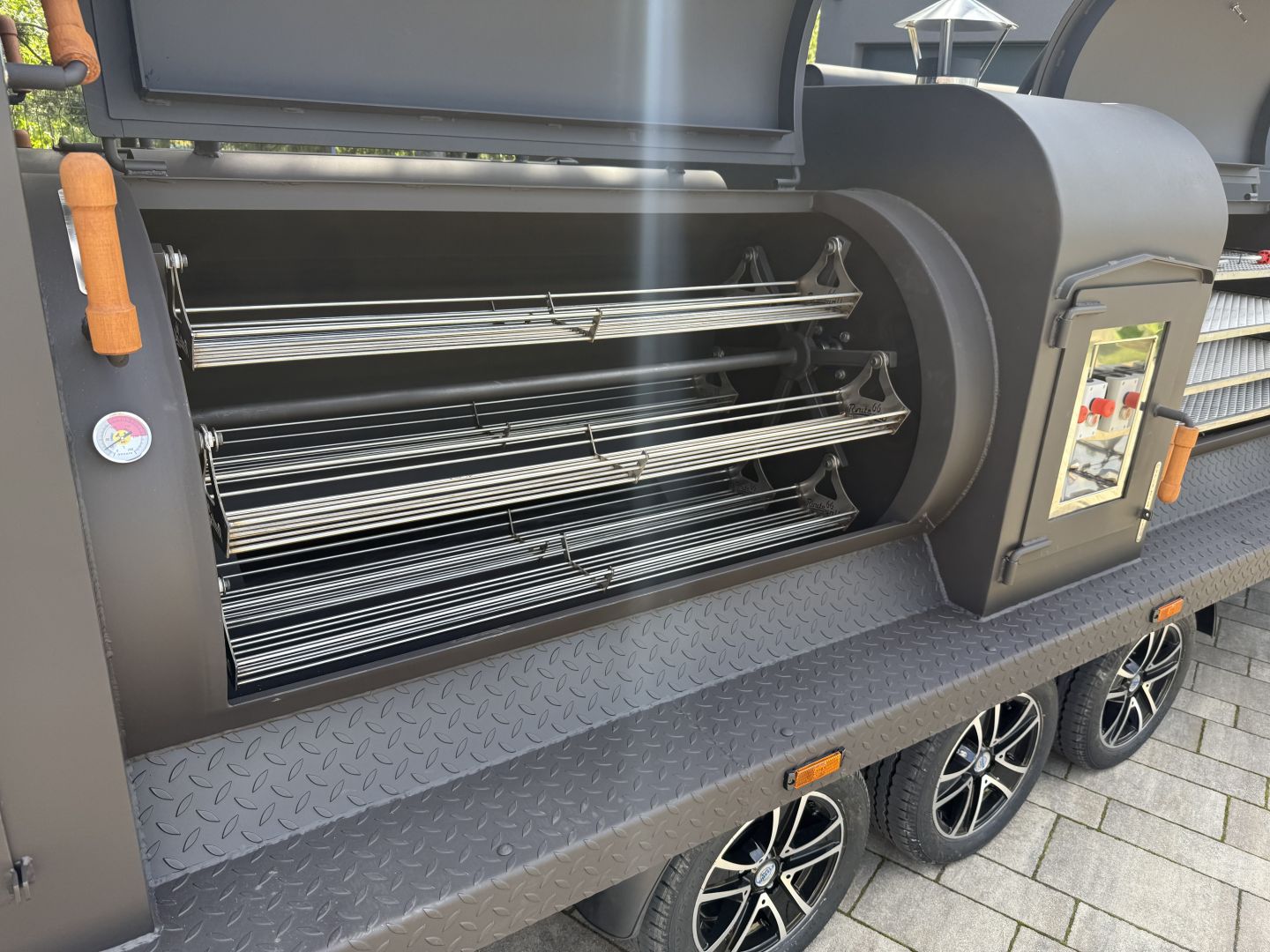 Przyczepa przeznaczona do obróbki BBQ w temperaturach od 80 do 220 stopni Celsjusza. Jest wyposażona w sterownik obiegu ciepłego powietrza zapewniający stabilną...