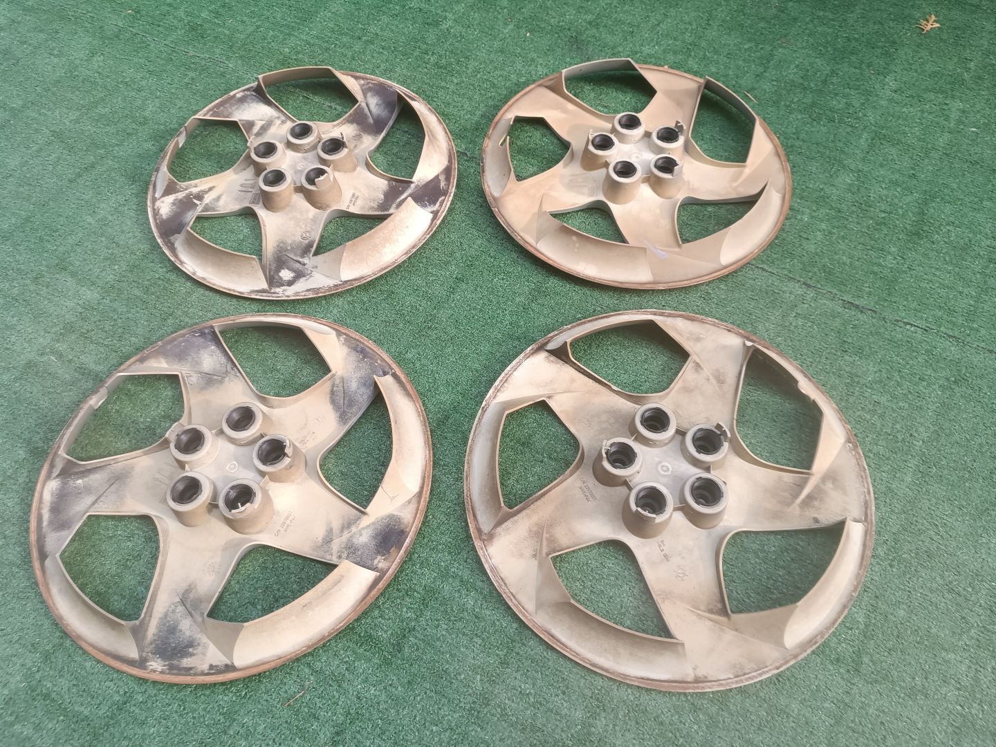 Komplet (4 sztuki) - Kołpaki 16" , Oryginał Pontiac 22676857 - rozmiar 16 cali, rozstaw śrub 5x100 - Kołpaki używane, posiadają oznaki użytkowania - rysy, obcierki, itp. Ogólnie całe, bez pęknięć, bez ubytków.